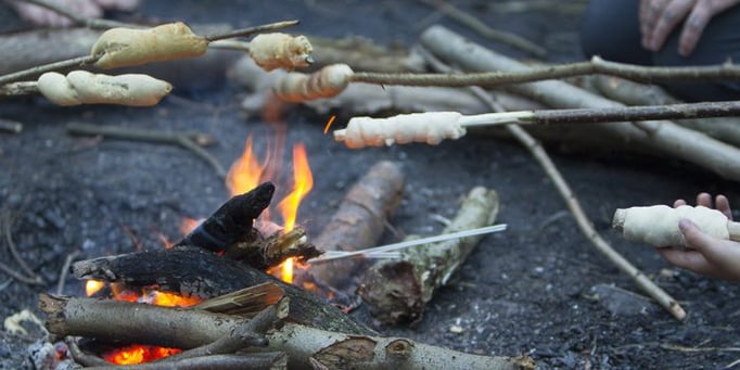 Für 10 Stockbrote nehme man 400 g Mehl, eine Packung Trockenhefe,